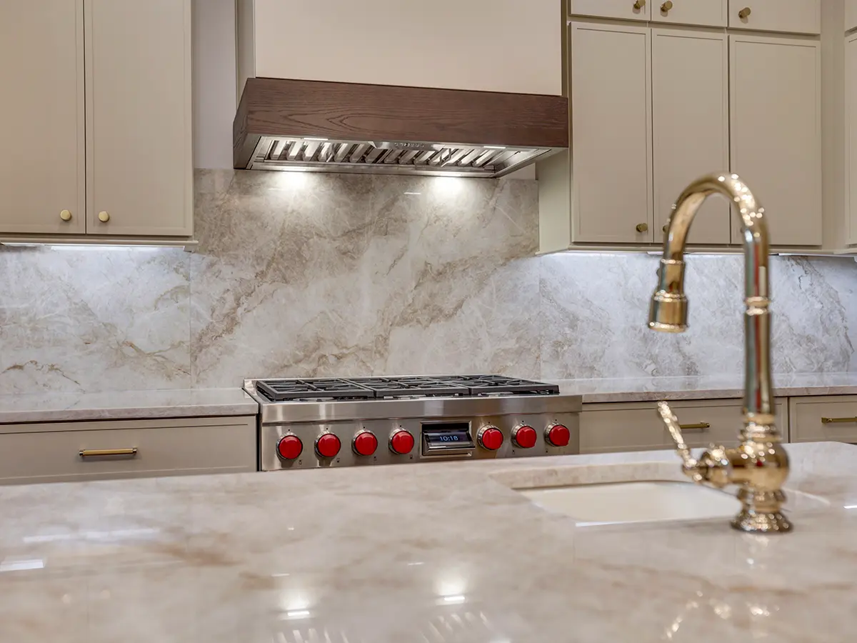 Our kitchen renovation was a long time coming, and we had some definite ideas of what we wanted: a giant island, lots of stone, a clean cabinet style, “beigey” colors, much better lighting and appliances–all unlike anything we’d had before.